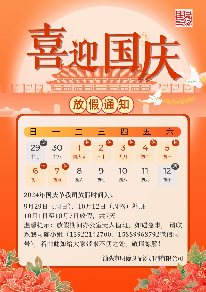 2024國慶放假通知